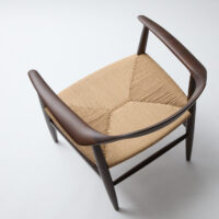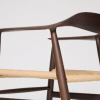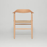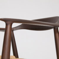 Even arms as sharp and delicate as these can be made astonishingly strong by joining the stile and legs slightly down from the top rail, allowing us to secure the internal dowel deeper in the joint. The joints are then made flush by hand, maintaining the chair’s beautiful form even as excess is sanded away. A reasonably priced, delightful piece.